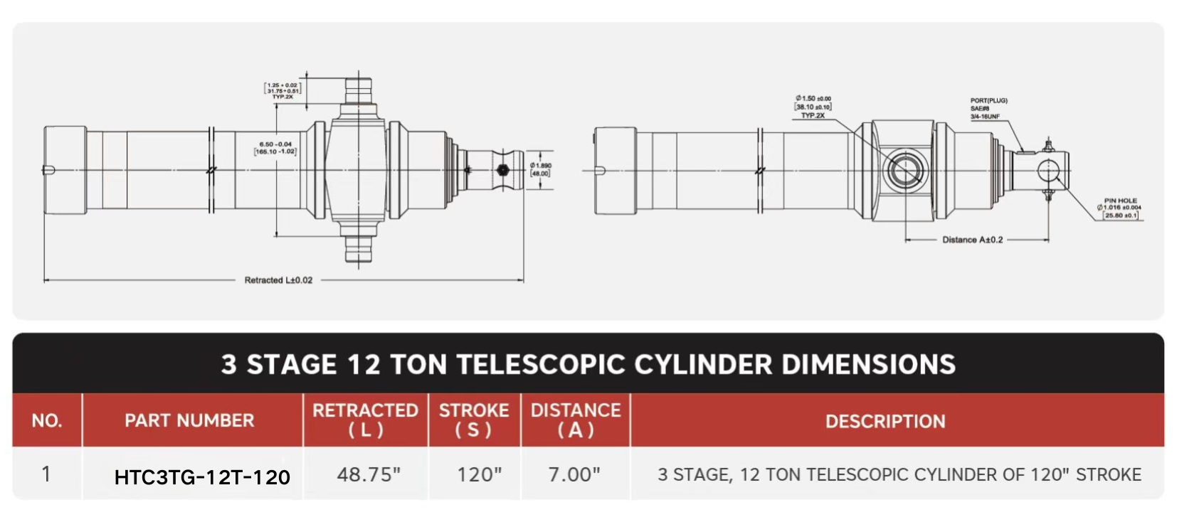 "HTC3TG-12T-120", 3-vaiheiset, 12 tonnia 120" iskunpituiset teleskooppisylinterit