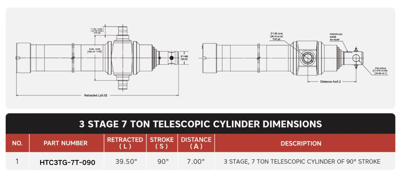 "HTC3TG-7T-090", 3-vaiheiset, 7 tonnia 90" iskun teleskooppisylinterit