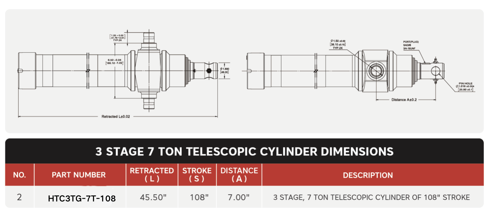 "HTC3TG-7T-108", 3-vaiheiset, 7 tonnia 108"-tahti teleskooppisylinterit