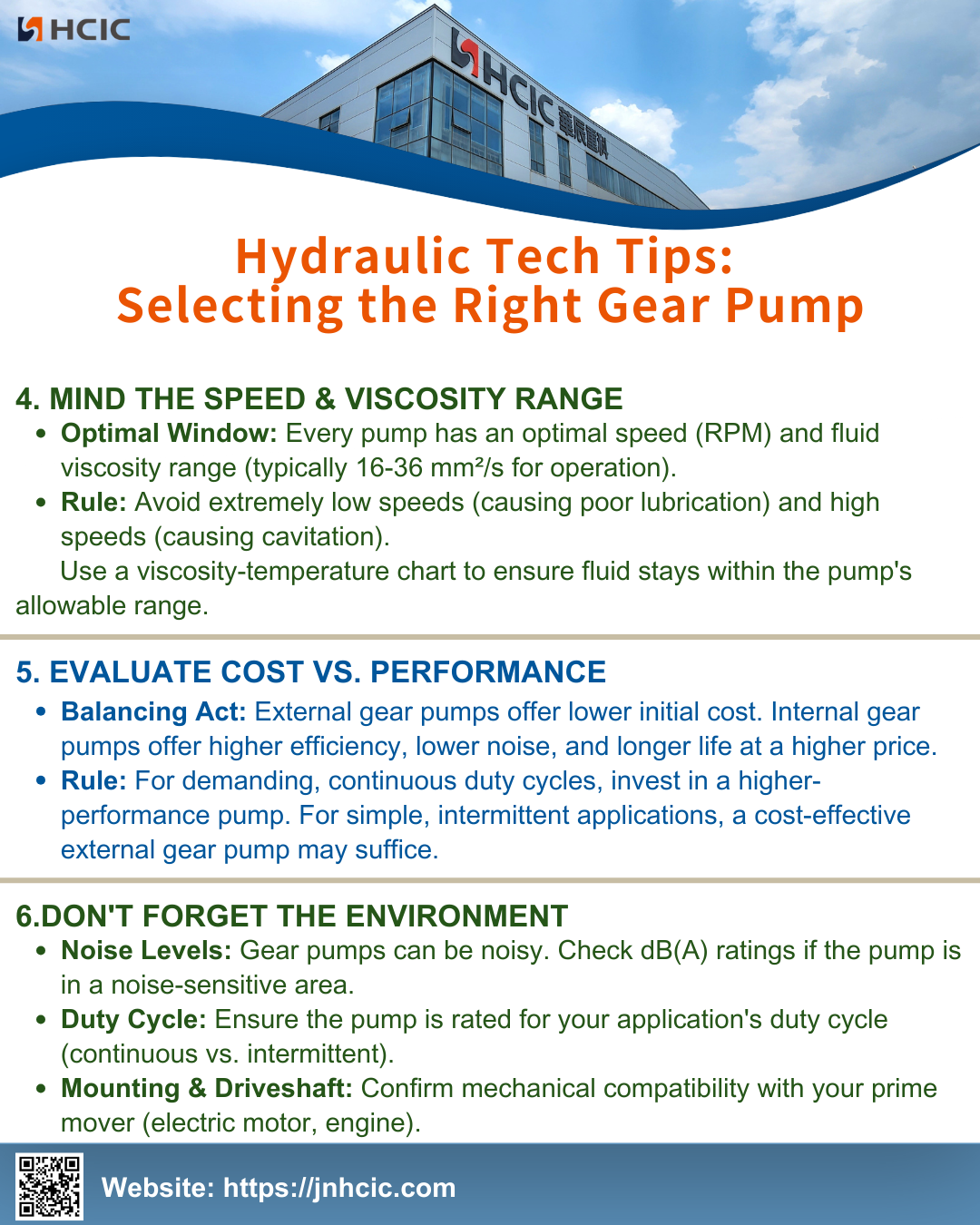 Sääntö: Investoi tehokkaampaan pumppuun vaativia ja jatkuvia käyttöjaksoja varten. Yksinkertaisiin, ajoittaisiin sovelluksiin kustannustehokas ulkoinen hammaspyöräpumppu voi riittää.